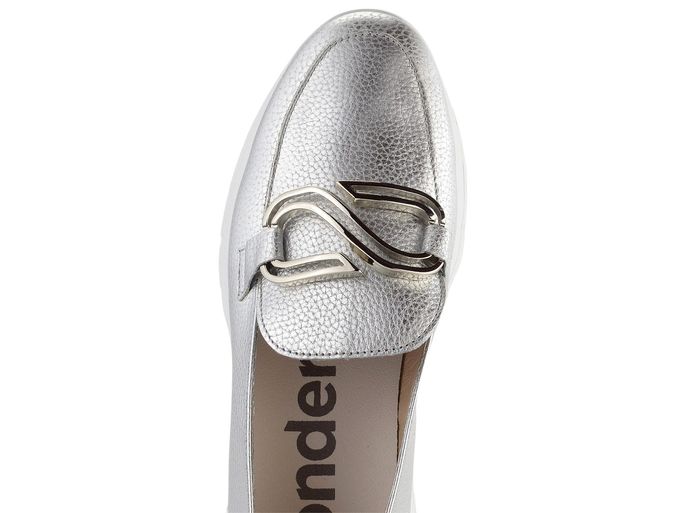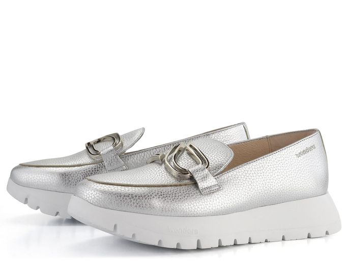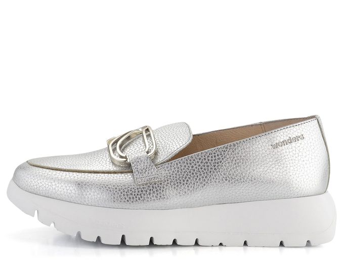 Představujeme vám dámské mokasíny na platformě od značky Wonders, které kombinují eleganci a pohodlí. Tyto polobotky ve stříbrné metalické barvě zaujmou na první pohled díky svému strukturovanému koženému svršku a ozdobné kovové sponě na nártu. Vnitřní část boty je vybavena koženou podšívkou a textilní špičkou, což zajišťuje maximální komfort při každodenním nošení. Vyjímatelná stélka s gelovou výplní MemoryGel poskytne vašim nohám měkký a příjemný došlap. Platforma s mírným klínkem a hrubým profilem podešve dodává botám nejen styl, ale i stabilitu a pohodlí. Tyto mokasíny jsou ideální volbou pro každou ženu, která hledá kvalitní, stylovou a pohodlnou obuv pro jarní a letní sezónu. Výška podpatku je 3,8 cm, což dodává botám elegantní vzhled a zároveň zaručuje pohodlný krok.
