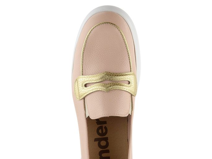 Dámské mokasíny značky Wonders jsou synonymem pro eleganci a pohodlí. Jejich polobotkový střih s kulatou špičkou a strukturovaný kožený svršek v pudrově růžové barvě s jemnými zlatými akcenty působí sofistikovaně. Mokasíny jsou navrženy s ohledem na komfort, což zajišťují pruženky na nártu pro snadné obutí a měkká vyjímatelná vložka s gelovou výplní MemoryGel®. Vnitřní kožená podšívka a měkčený patní lem přispívají k celodennímu pohodlí. Vysoká a lehká platforma s mírným klínkem a 5,8 cm podpatkem dodává botám moderní šmrnc. Mokasíny jsou ideální volbou pro ty, kteří hledají stylovou a pohodlnou obuv do města či kanceláře.
