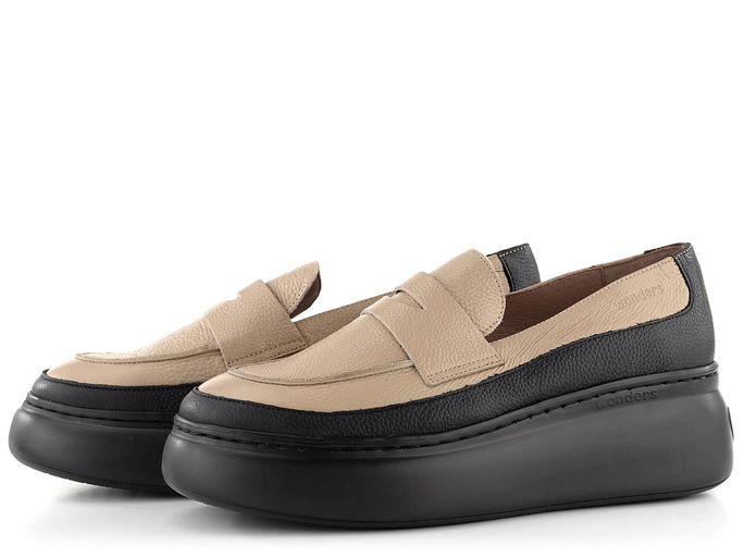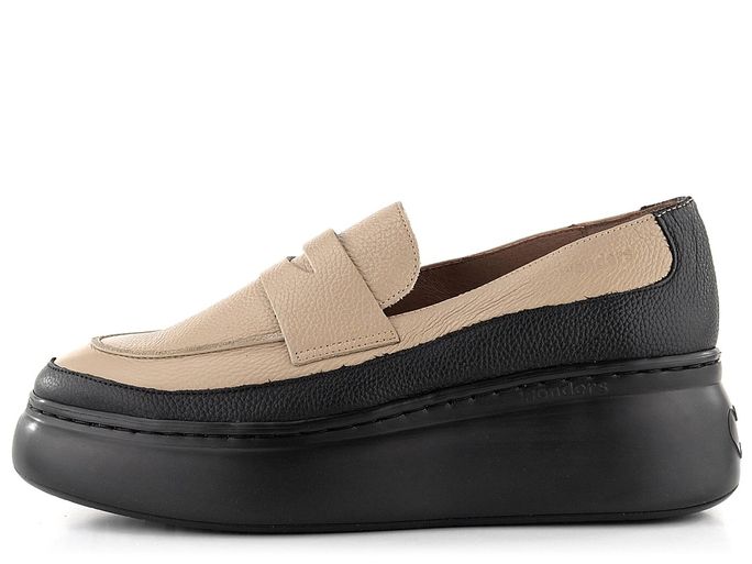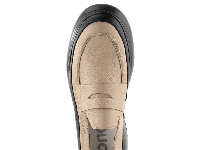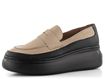Dámské slip-on polobotky v béžovo-černé kombinaci barev a na vysoké platformě s klínkem.
