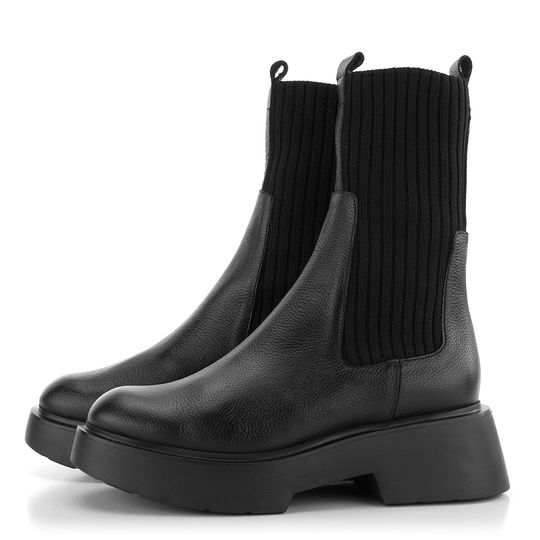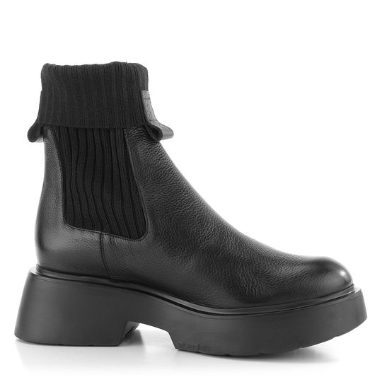 Dámský kotník se strečem a jemně strukturovanou kůží na vyšší odlehčené platformě.