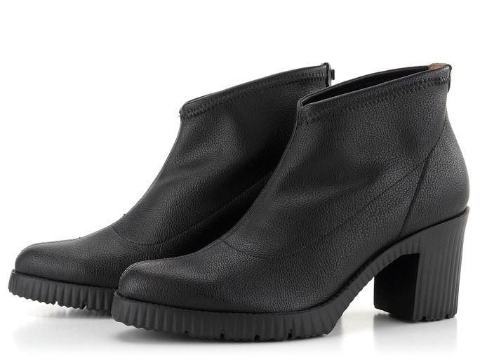 Dámský nevyteplený kotník ze strečového materiálu, na platformě s vysokým, širokým podpatkem.