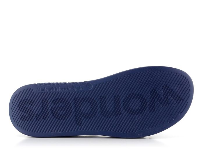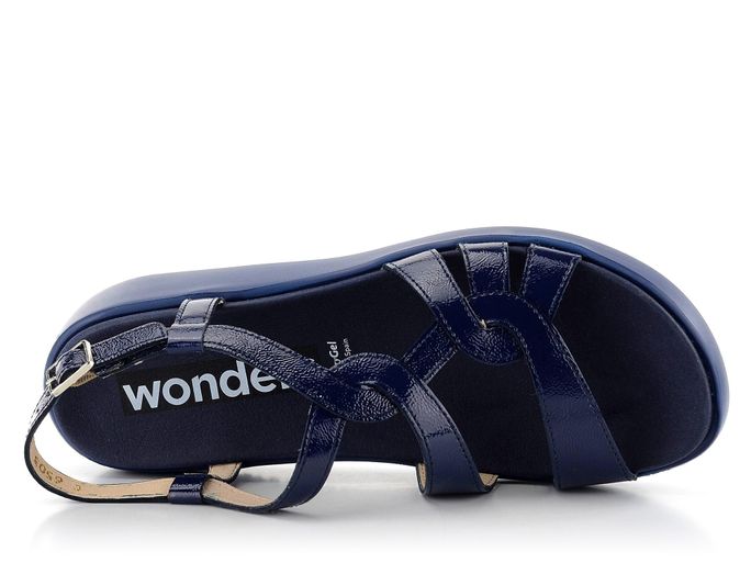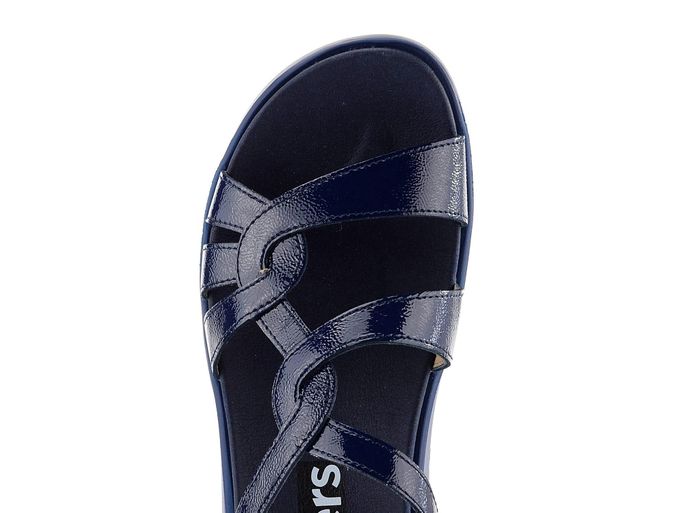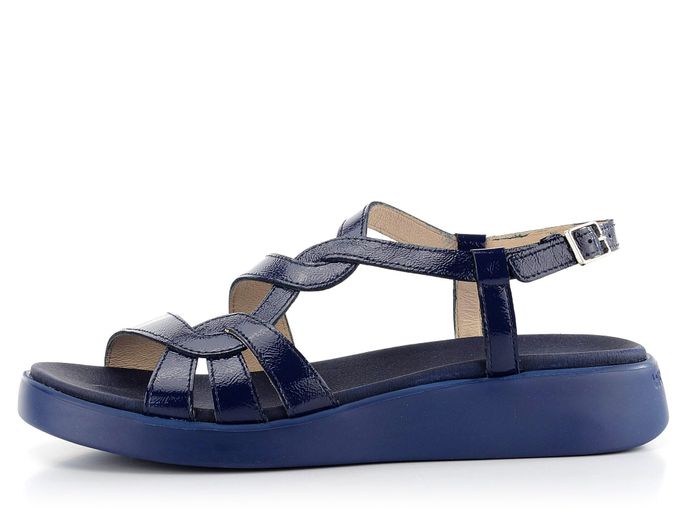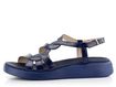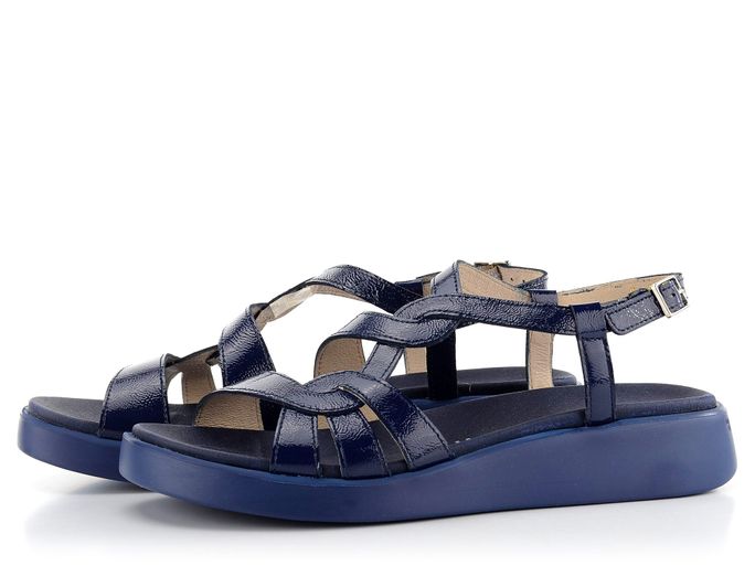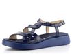 Dámské letní sandály s koženými pásky v tmavě modré barvě, s lehkou podešví na mírném klínku.