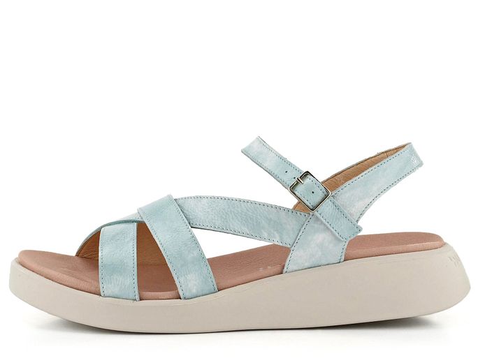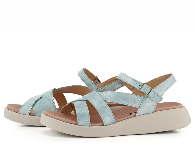 Dámské letní sandály s koženými pásky z lakované kůže, s lehkou podešví na mírném klínku.