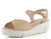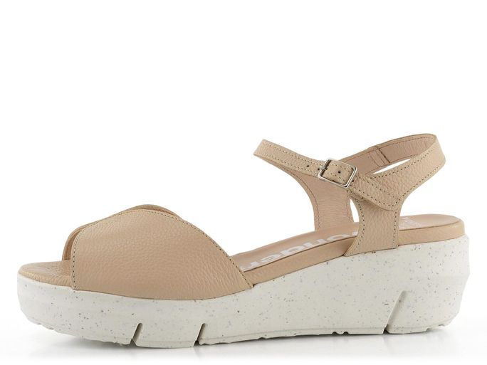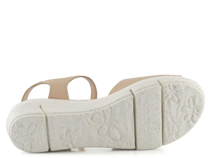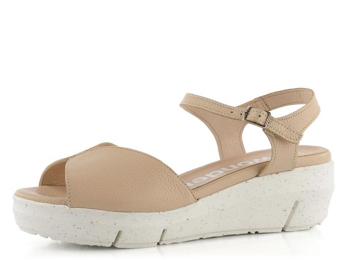 Dámské kožené sandály na platformě značky Wonders jsou ideální volbou pro jarní a letní sezónu. Tyto sandály vynikají prostorným kulatým střihem a zajímavě střiženým předním páskem, který zaručuje, že boty skvěle padnou. Vyrobené z kvalitní strukturované kůže v příjemném odstínu béžové barvy, působí velmi přirozeně. Vnitřní strana pásků je také kožená, což zvyšuje komfort při nošení. Měkká kožená stélka s výplní MemoryGel® poskytuje pohodlí po celý den. Patní pásek s regulací a všitou pruženkou zajišťuje snadné obouvání a pevné držení nohy. Lehká podešev s klínkem dodává botám moderní vzhled a zároveň zvyšuje jejich pohodlí. Lepený výrobní způsob zaručuje dlouhou životnost. Výška podpatku činí 5 cm, což poskytuje ideální kombinaci elegance a komfortu.