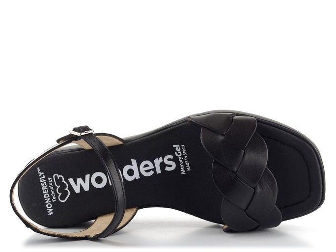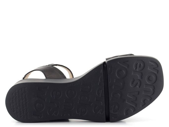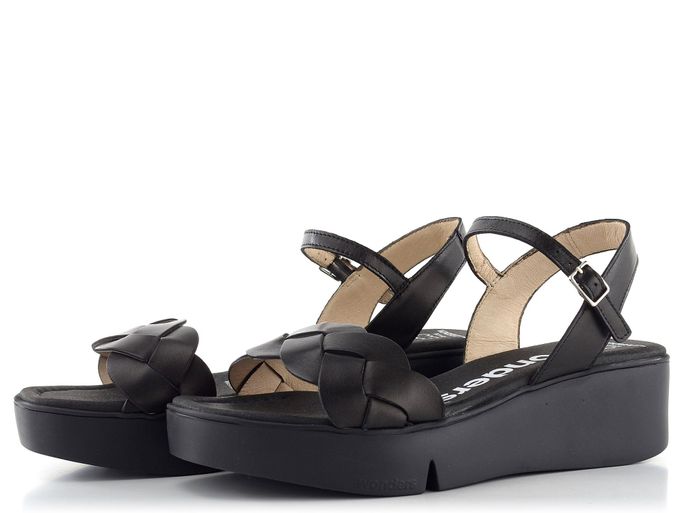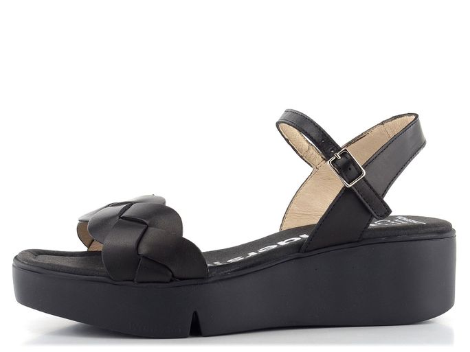 Dámské sandály z hladké kůže v černé barvě, na vyšší podešvi s klínem.