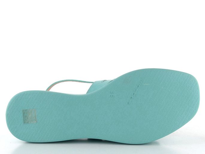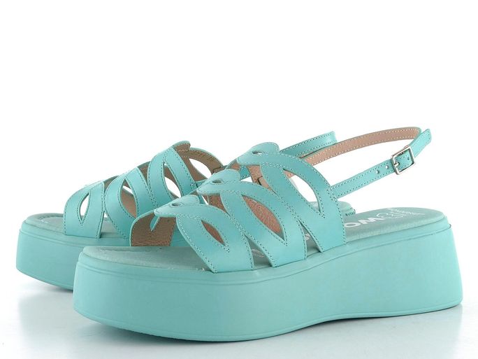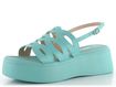 Dámské sandály z hladké kůže v tyrkysově modré barvě na vysoké módní platformě.