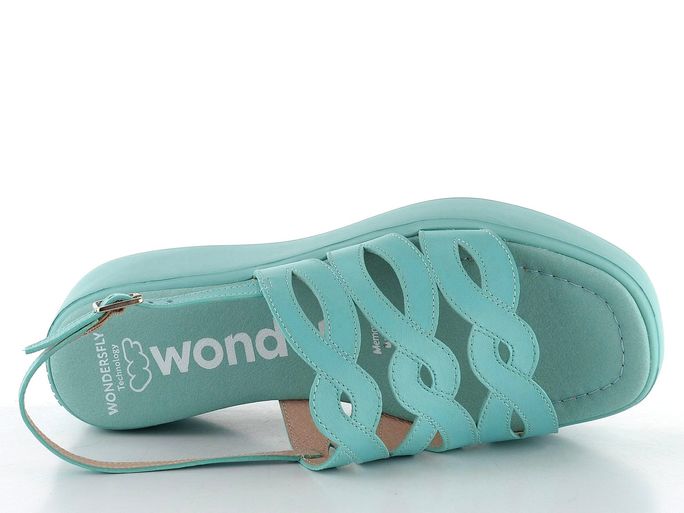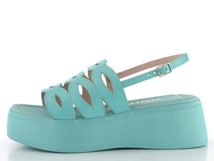 Představujeme vám pohodlné dámské sandály na platformě od značky Wonders, ideální volbu pro jarní a letní dny. Tyto stylové sandály vynikají svou tyrkysově modrou barvou a hranatější špičkou, která dodává moderní vzhled. Svršek je vyroben z hladké kůže a pásky jsou ozdobně prořezávané do vlnek, což přidává na eleganci. Díky patnímu pásku s délkovou regulací a všitou pruženkou se snadno přizpůsobí vaší noze. Měkká, anatomicky tvarovaná stélka s MemoryGel® zajišťuje maximální komfort. Lehká platforma s výškou podpatku 5,8 cm přidává na pohodlí při každém kroku. Tyto sandály jsou dokonalou kombinací stylu a pohodlí pro každodenní nošení.