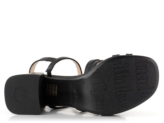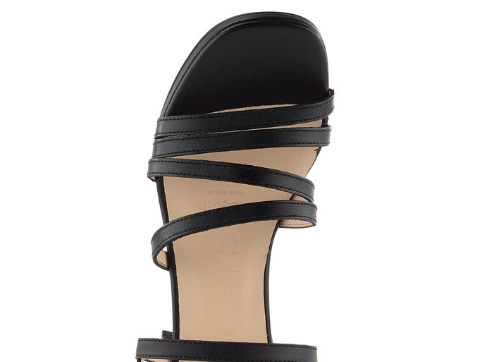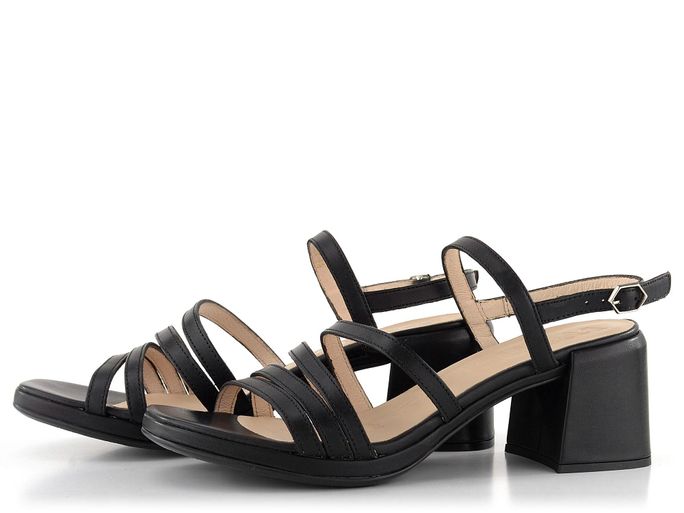 Dámské celokožené sandály s tenkými pásky v černé barvě a na pohodlném podpatku.
