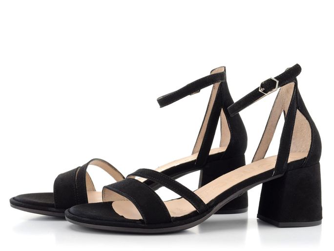 Dámské páskové sandálky ze semišové kůže, s plnou patou a pohodlným podpatkem.
