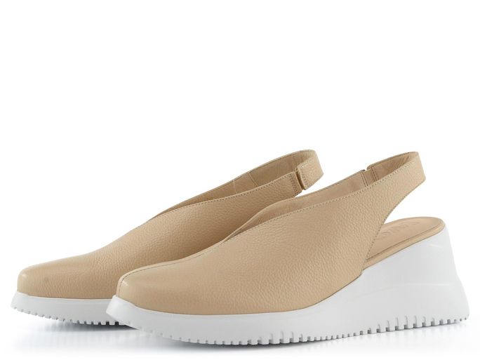 Dámské letní sandály ze strukturované kůže, lodičkového střihu s plnou špičkou a na vysoké a lehké podešvi.