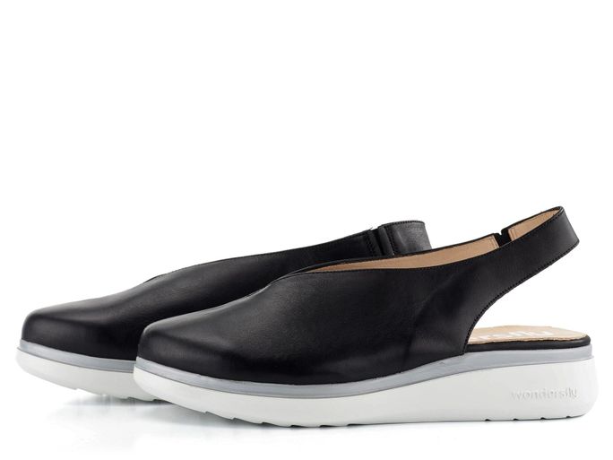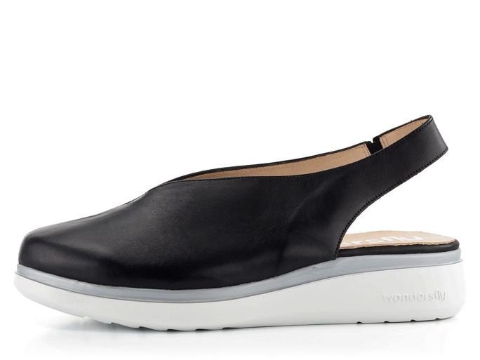 Dámské letní sandály z černé hladké kůže, s plnou špičkou a na mírném klínku.