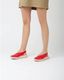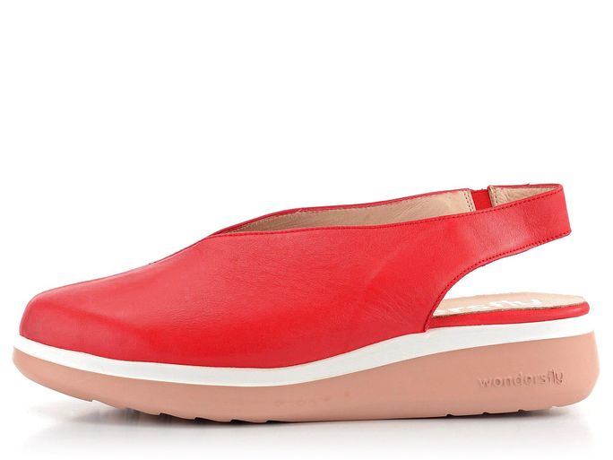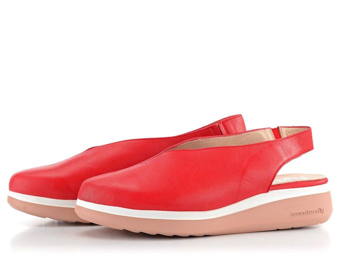 Dámské letní sandály z červené hladké kůže, s plnou špičkou a na mírném klínku.