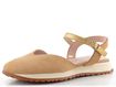 Dámské sandály značky Wonders jsou ideální volbou pro jarní a letní dny. Tyto pohodlné sandály s uzavřenou špičkou kombinují styl a komfort. Svršek z nubukové kůže a strukturovaný pásek s metalickou úpravou v béžové a zlaté barvě dodávají elegantní vzhled.