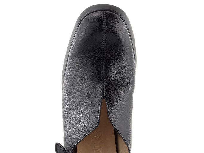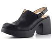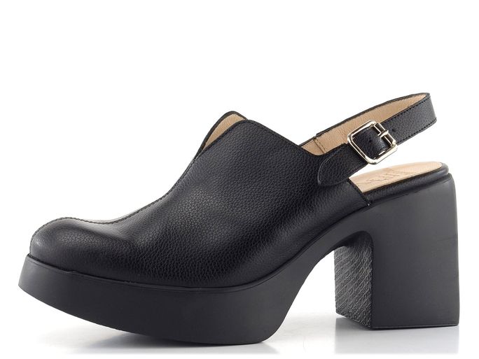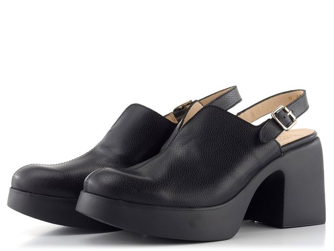 Dámské nevšední uzavřené sandály z černé strukturované kůže na vysoké platformě se širokým podpatkem.