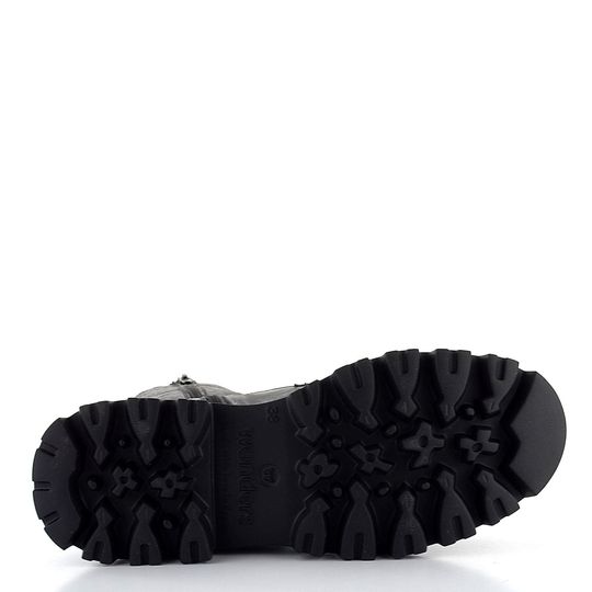 Elegantní a trendy dámské kotníkové boty od španělské značky Wonders jsou ideální volbou pro podzimní a zimní sezónu. Tyto boty vynikají svou tmavě kovově šedou barvou a metalickou kůží s přiznanou strukturou, která dodává moderní vzhled. Boty mají pěknou kulatou špičku a klasické šněrování s kulatými tkaničkami, což zajišťuje pohodlné nošení. Na vnitřní straně je umístěn funkční zip pro snadné obutí, zatímco pruženka na vnější straně přispívá k lepšímu přizpůsobení.
