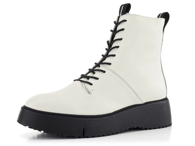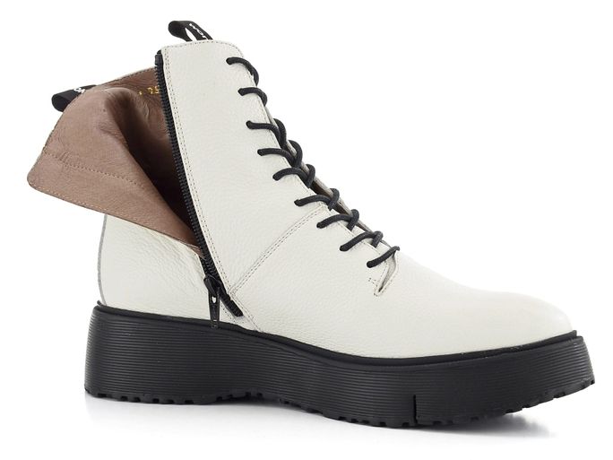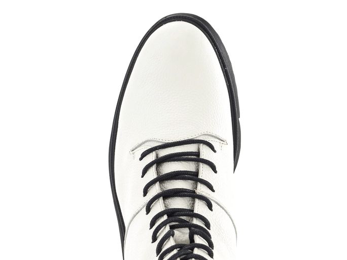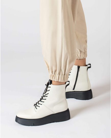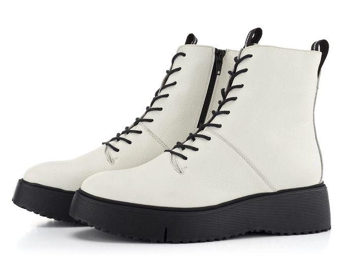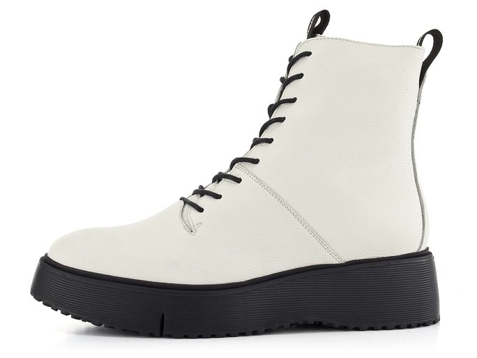 Robustnější dámský kotník z jemně strukturované kůže v bílé barvě, na vysoké odlehčené platformě.