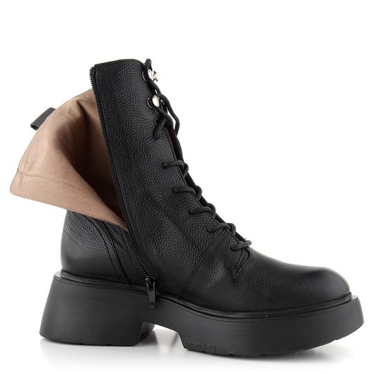 Robustnější dámský kotník z jemně strukturované kůže na vysoké odlehčené platformě.
