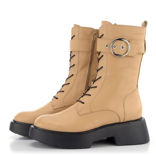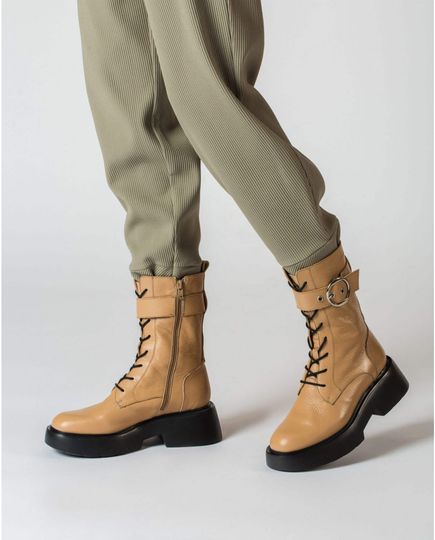 Stylový dámský kožený kotník v karamelové barvě s robustní odlehčenou podešví.
