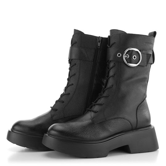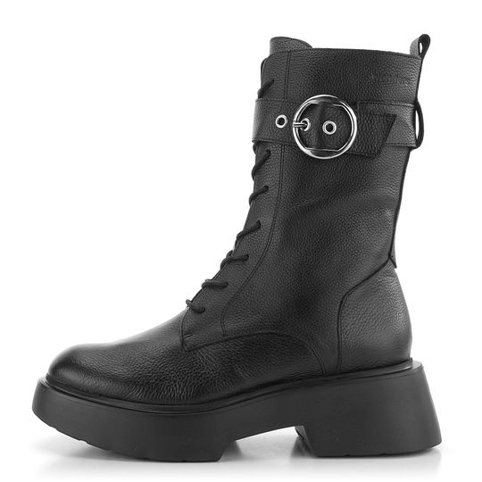 Stylový dámský kožený kotník v černé barvě s robustní odlehčenou podešví.
