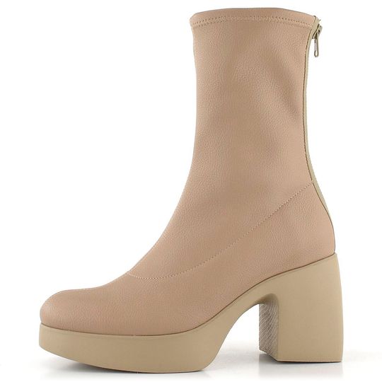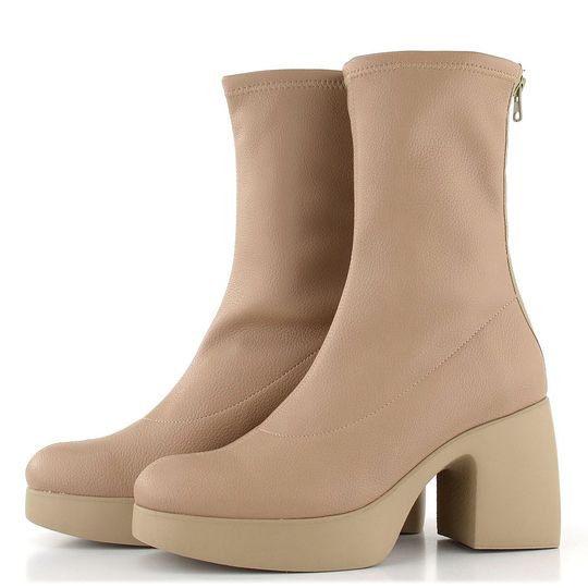 Dámský vysoký kotník v béžové barvě, na platformě s podpatkem a se zapínáním na zadní zip.